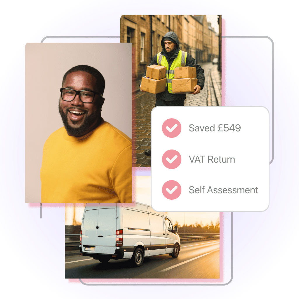 Everything you need to stay on top of your taxes as a courier driver: VAT returns, self-assessments, tax registration, money-saving tips, deadline tracking, reminders, and unlimited support for your questions.